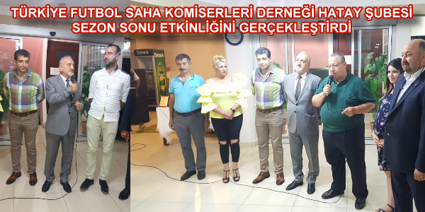 Türkiye Futbol Saha Komiserleri Derneği Hatay Şubesi sezon sonu münasebetiyle saha komiserleri ile bir ara geldi. Düzenlenen etkinlikte yaştan dolayı görev süreleri sona eren saha komiserleri görevlerini layıkıyla ifa etmeleri anısına birer plaketle ödüllendirildiler.