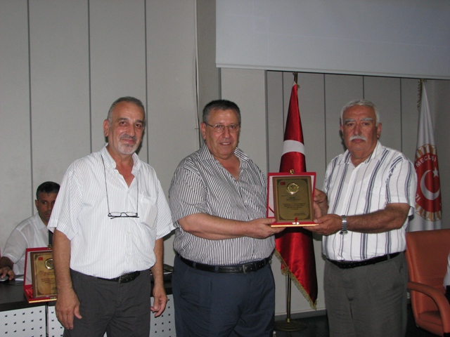 Toplantı sonrasında amatör spora katkı sağlayan ilçe ve belde Belediye Başkanları'na bu katkılarının anısına birer plaket ile teşekkür edildi.