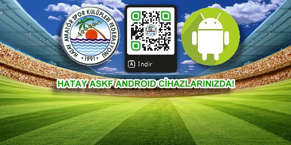 Uygulamayı indirebilmek için "Google Play Store" uygulamasına girerek arama bölümüne "Hatay ASKF" yazabilir ya da kare kod (qr-code) okuyucu programınıza aşağıdaki kodu okutarak telefonunuza indirebilirsiniz.
